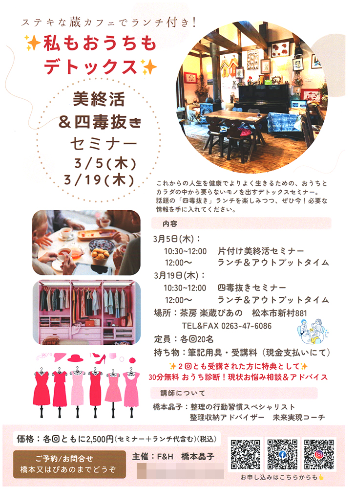 [ ご予約 ] TEL:0263-34-1514(留守録)またはチラシ内 E-mailアドレスへ